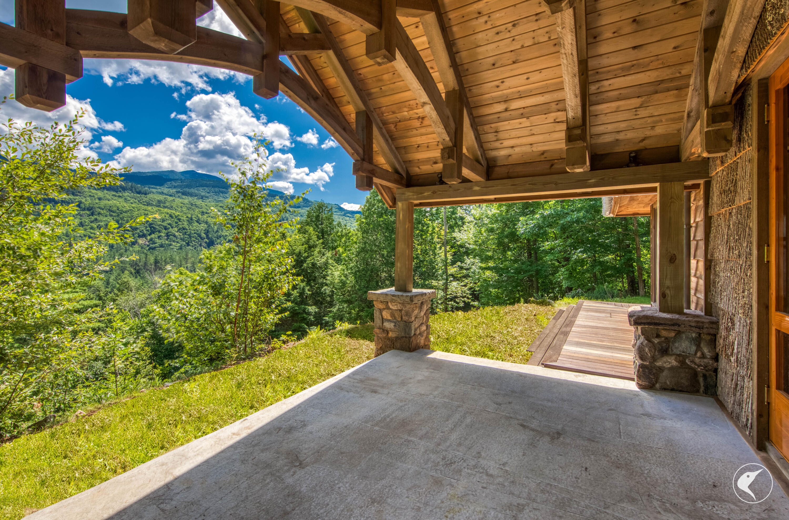 Perched on a natural shelf along the ridge leading to the Wolfjaw Peaks, the lodge offers breathtaking panoramic views of Giant Mountain and the Hurricane Mountain Wilderness. Towering 60-foot granite cliffs provide unparalleled privacy, while the surrounding mixed-wood forest creates a secluded sanctuary. For outdoor enthusiasts, direct access to the Adirondack High Peaks trail system ensures endless exploration right outside your door.